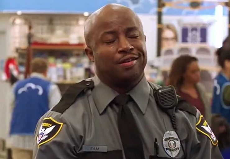 Sam is a store security guard. He and Brett open the store's front doors to cool down when the store is overheated. Sam appears in other episodes. He is on duty the day a tornado hits the store. He is portrayed by Jeremy Clements. | |||