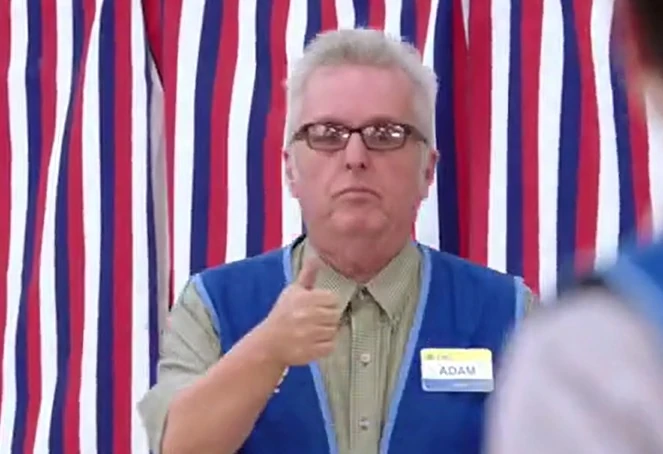 Adam is seen exiting a voting booth and giving Amy and Jonah the thumbs up. Adam appears in other episodes. In "Valentine's Day" his name is "Ashton" before settling on "Dougie" from "Super Hot Store" onwards. He is portrayed by Doug Cameron. | |||