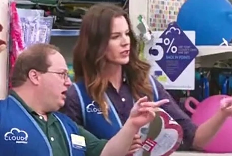 Molly is seen trying to scan her own name tag. It's implied by Amy that she might be among the 50% of employees who are high at work. Molly appears in other episodes. On rebranding day, she's seen working the eye glasses centre. | |||